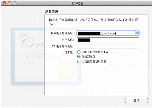 首先打开应用程序 - Utilities - Keychain Access(KEY CHAIN),在Certificate Assistant中,选择“证书颁发机构的证书”,如下所示: