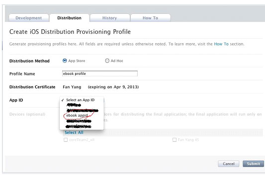 您需要填写苹果开发者在苹果公司(Apple)收到的发布申请的资格信息(详细信息请参阅证书的导出)并确认提交。请确保填写正确,否则包裹将失败。